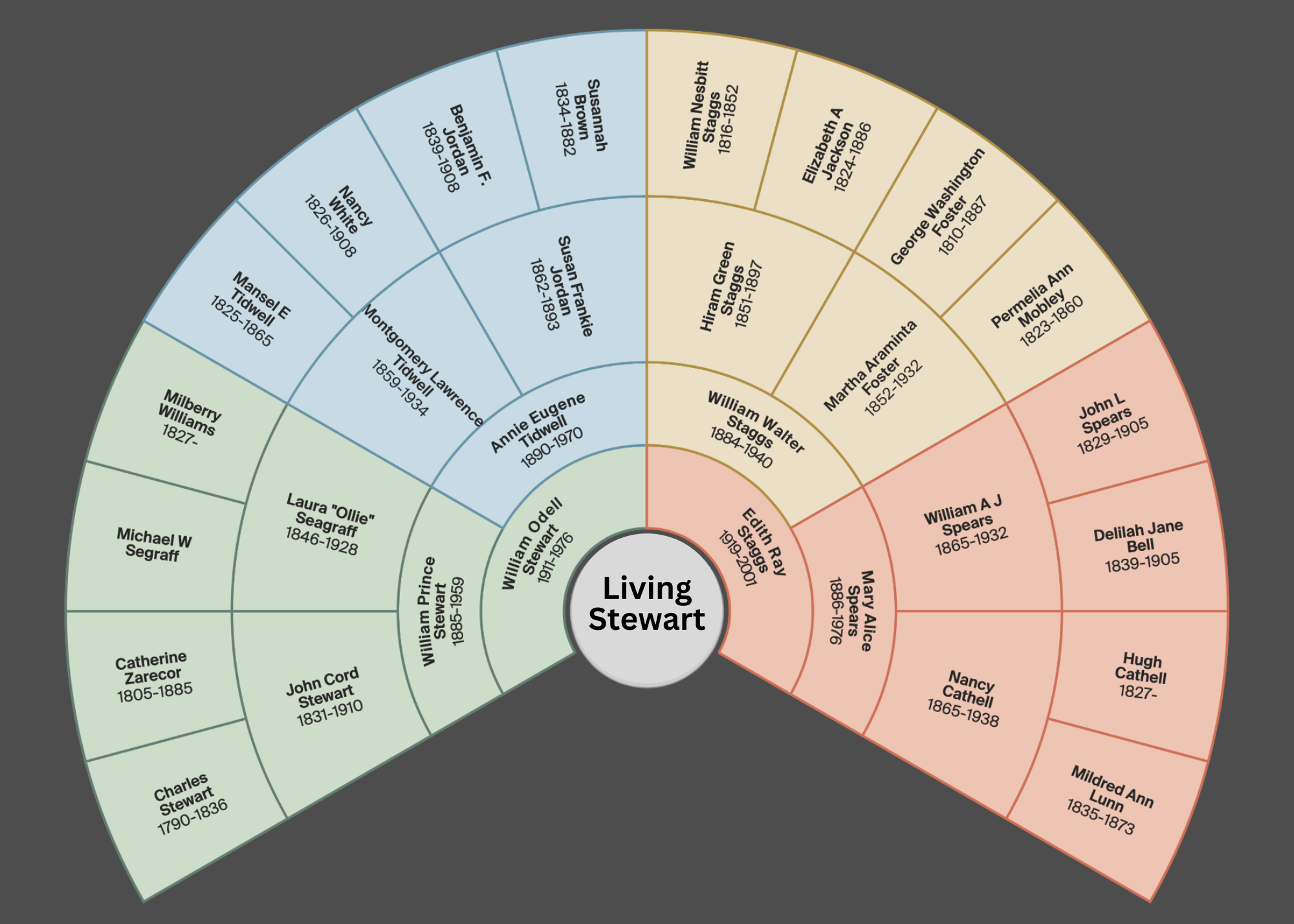 Our Middle Tennessee Stewart family tree begins in Long Island, New York in the 1600s, moves to New Jersey, Delaware, Virginia, and North Carolina before moving into Middle Tennessee in 1793. Sadly, we are missing the wife of David Stewart, the third great-grandfather of Living Stewart. We continue to search for her, but as the marriage between her and David Stewart most likely took place on the frontier, records aren’t of much help. Still, we’ll keep looking.